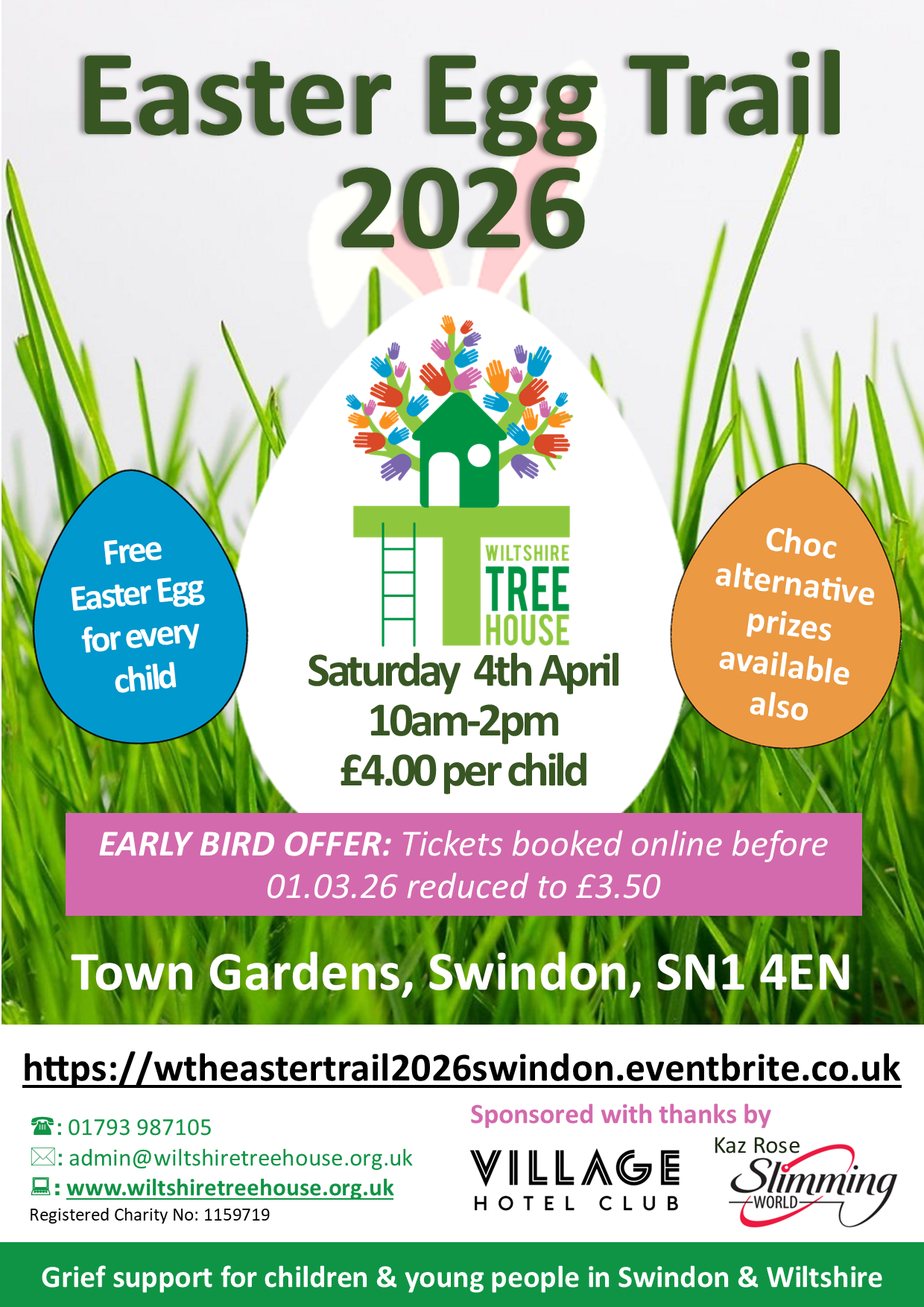 A family friendly Easter Egg Trail, hosted by Wiltshire Treehouse – supporting bereaved children and young people.