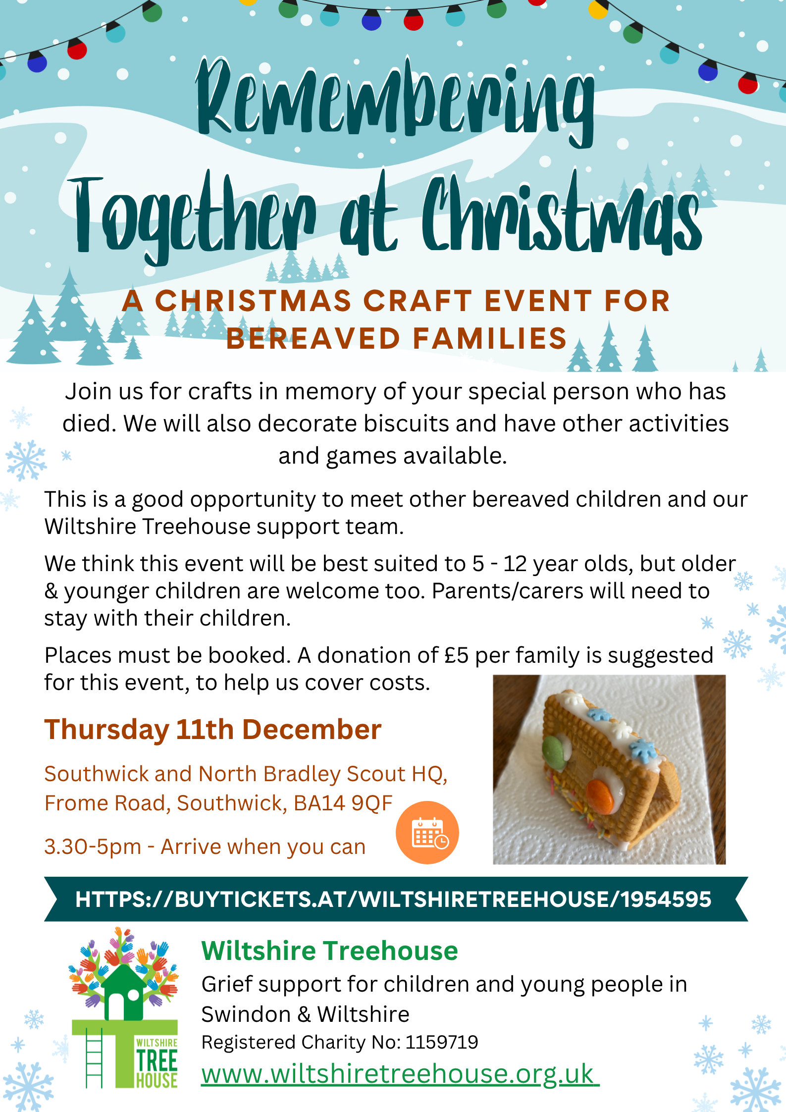 All profits from the event will go to the Wiltshire Treehouse charity, At Wiltshire Treehouse they support children and young people who have been affected by the death of someone important to them and we will learn more about this great charity on the day.