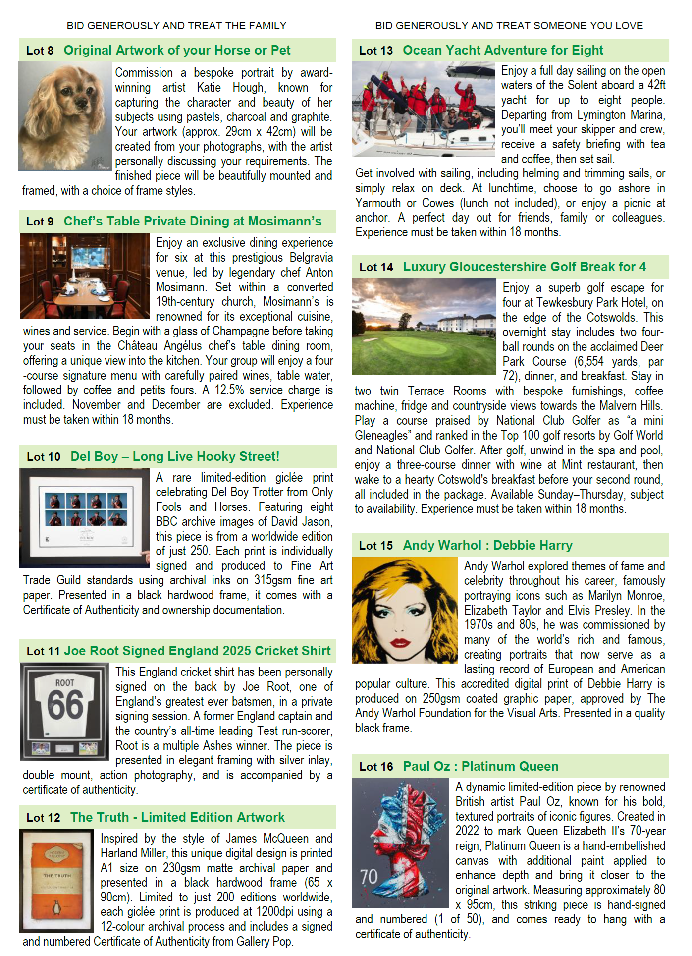 We will be holding a silent auction at our Charity Gala this Friday, featuring a curated selection of exclusive experiences, artwork and memorabilia. Please see below to view what is available, or visit https://wiltshiretreehouse.org.uk/wp-content/uploads/2026/04/Auction-BROCHURE-PDF.pdf.